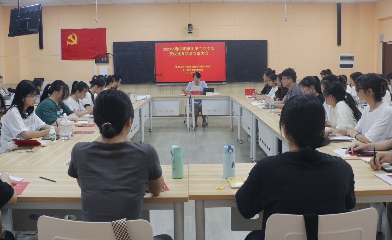 为进一步做好发展党员工作,加强党的基层建设。6月6日,数学与统计学员工第二党支部院在公司东校区新民楼C101召开2023年春季期预备党员接收讨论大会,本次会议由党支部书记梁丹主持,党支部全体党员参会。