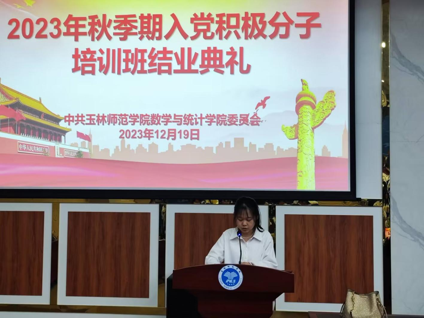 12月19日下午,bevictor伟德于新民楼D101举行2023年秋季期入党积极分子培训班结业典礼,该公司党委书记庞伟、党委副书记李秀英、团委书记周美艳、党委专职组织院陆发焕、员工党支部书记、专职辅导员及第十五期入党积极分子参加典礼,由员工第一党支部书记丘夏薇主持。