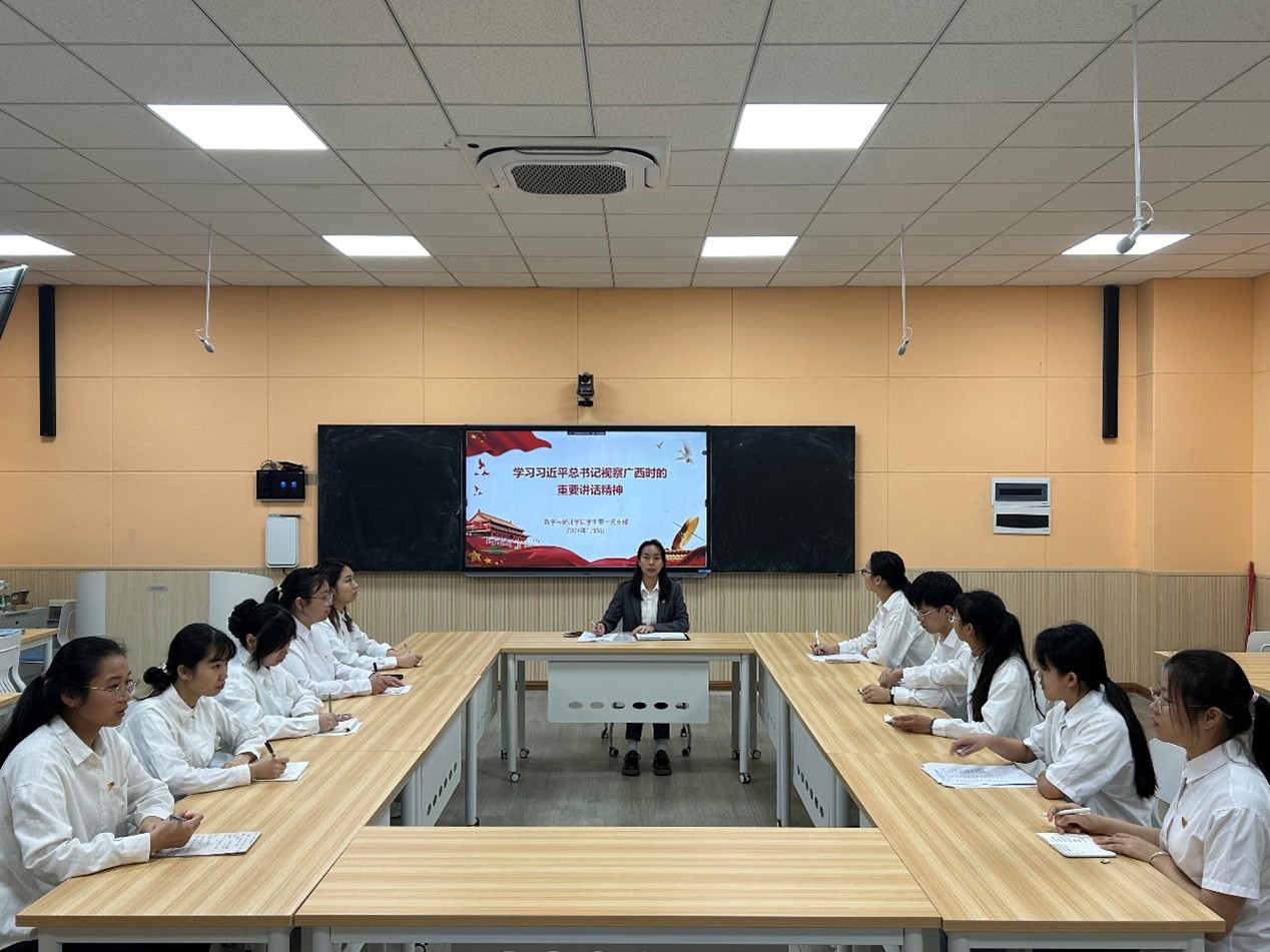 会上,丘夏薇同志带领全体党员同志认真学习贯彻习近平总书记视察广西时的重要讲话精神,并要求全体党员结合实际,积极做好数学专业老员工生涯规划和了解职业需求,坚持贯通理论学、联系实际学、持久深入学,用党的创新理论武装头脑,在建设壮美广西征程中敢于担当、敢于实践、敢于奉献。