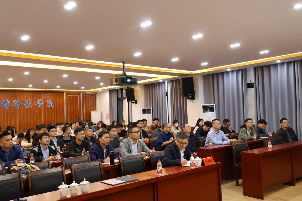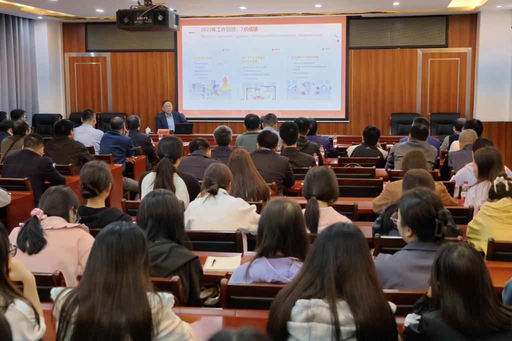 报告上,杨新民教授主要从两会会议时间及地点、两会主要内容、习近平总书记参加两会、提案及个人体会四个方面解读了今年全国两会政府工作报告,重点围绕习近平总书记参加两会时关于科技自立自强、发展新质生产力的重要讲话进行了宣讲。杨新民教授分享说“高校作为基础研究主力军、核心技术突破策源地和人才培养主阵地,是推动新质生产力加快发展的重要力量”、“推动新质生产力发展,培养具有创新能力的人才是关键,而这也是高校的责任和义务” 。