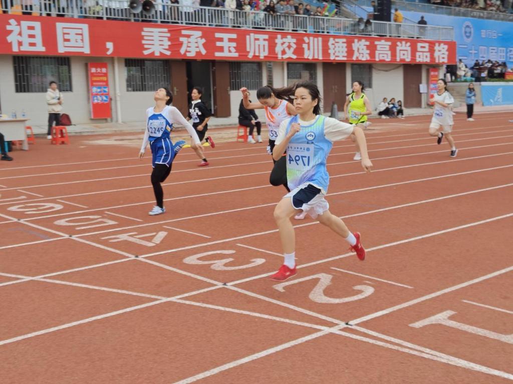 场上,运动员们目光炽热地看向终点,她们蓄势待发,只听“砰”一声,她们奋力奔跑,双腿有力而快速交替,她们如飞驰的利箭飞奔,运动员们竭尽全力奔向终点在跑道上,观众们看着跑道上疾速奔跑的运动员们热情欢呼,啦啦队响亮的加油声连绵不断。