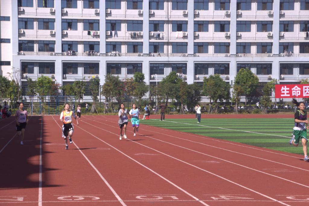 赛前,运动员们精神饱满,斗志昂扬,各自进行热身准备,等待上道。当裁判员宣布上道时,所有人都在此刻屏息凝神。伴随着裁判员的一声枪响,运动员们如离弦之箭,迅速冲出起跑线。她们迈着大大的步子,你追我赶,把控节奏,快速向前奔跑。广播里播放着的热血激昂的音乐,观众们一声声热烈的加油与呐喊都在为她们助威。当运动员们冲过终点线时,观众们的热情达到顶峰,全场都为她们热烈的欢呼。