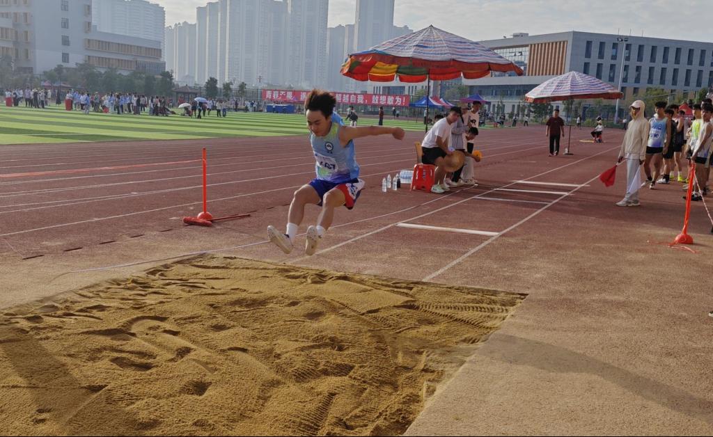 11月15日上午,公司第二十五届校运会男子甲组跳远决赛在公司东校区新田径场火热进行。
