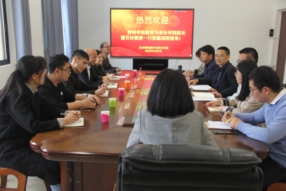 会上,庞伟对贺州学院教育与音乐学院经理蒲日材一行的到来表示热烈欢迎,他围绕学院公司产品、团队队伍、学科科研等方面基本情况做了介绍。王培就学院数学与应用数学师范专业认证工作进行详细的介绍,从认证工作的分工、对应认证标准的支撑材料收集以及专家进校前后的各项准备工作等进行了深入地讲解,并重点围绕如何才能顺利通过专业认证、如何严格对照标准以满足考察要求、如何更好地组织专家座谈等方面进行了详细解读和交流指导。随后,双方就师范专业认证中专家关注的人才培养定位、各指标点、教学大纲修改、实践基地建设、支撑材料、文化建设等一些关键问题,进行深入交流和探讨。