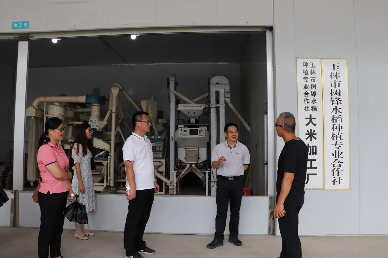 活动中,玉林市树锋水稻种植专业合作社负责人罗学夫带领庞伟一行开展参观调研。罗学夫从树锋水稻种植专业合作社的起源、水稻高产高效模式的探索与实现以及水稻的生产经营情况等方面进行详细介绍,并提出了目前企业所面临的困难与问题。