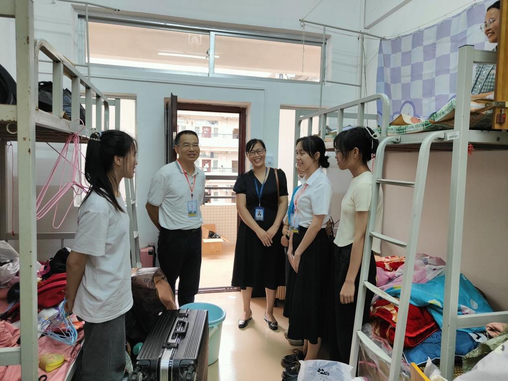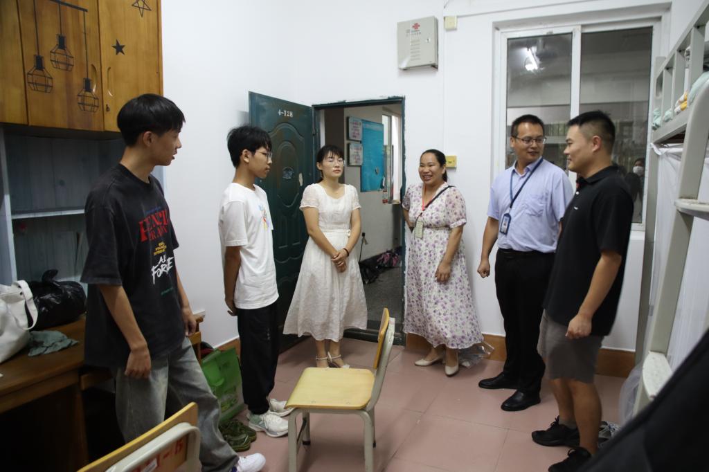 9月2日,数学与统计公司党委书记庞伟、副经理王培(主持全面行政工作)、党委副书记李秀英、党委专职组织员陈金梅等领导班子、辅导员及班主任深入宿舍走访慰问2023级新生。