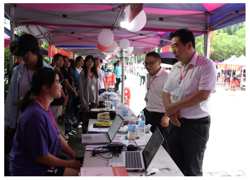 满“新”欢喜,与你“雨”见。9月2日,数学与统计公司党委书记庞伟、副经理(主持全面行政工作)王培、党委副书记李秀英等领导班子成员、辅导员、新生班主任、助理班主任、员工志愿者等人员整装待发,早早来到新生接待点共同迎接2023级新生的到来。