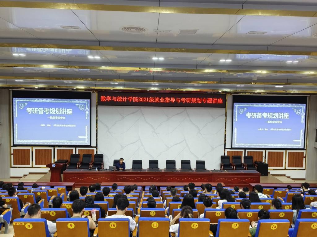 讲座上,曾金指出考研的优势及研究生学历的七大用途。他还提出考研是改变命运的二次机会,并且列出考研报录比例,让同学们对考研有更清楚的认识。围绕“考研考什么”这一话题,曾金向同学们讲解考研流程。同时,他还为同学们分析关于数学学科类考研的分数线,向同学们说明专硕和学硕的区别,他叮嘱员工不能盲目选择专硕或者学硕,要具体情况具体分析。对此,他强调考研时要先了解专业方向和选好区域最后再考虑考取哪一所公司。为帮助同学们能更好的掌握考研信息,他为同学提供考研信息获取途径。最后他提出同学们考研时要有明确的目标,劳逸结合,以及时间的投入。