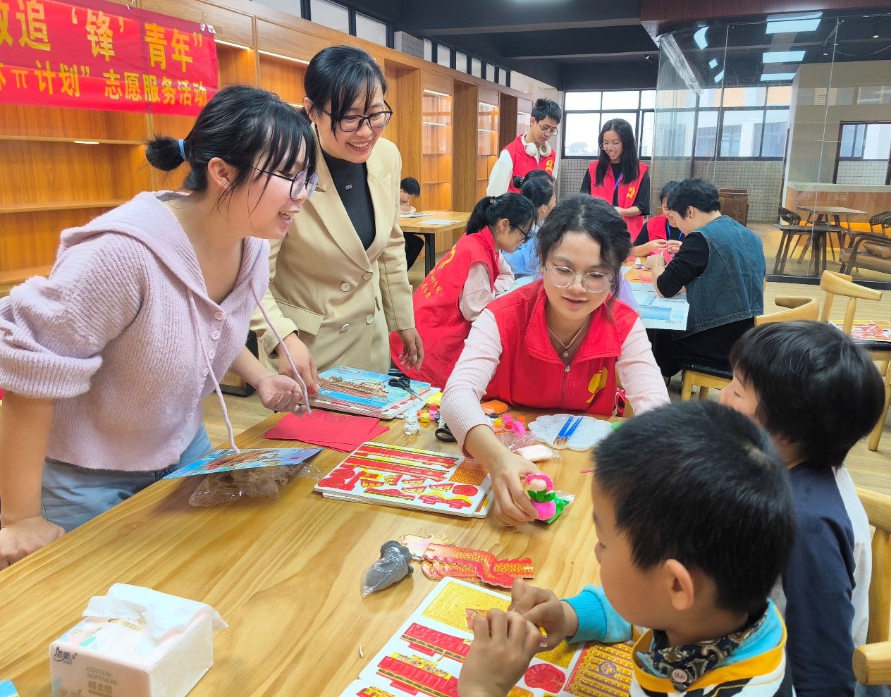 在活动开始前,党委副书记李秀英说明了“红数林π计划”的总体情况和本次活动的重要意义,着重强调了安全问题,要求每个志愿者对应服务一个小朋友,协助他们顺利完成手工作品。