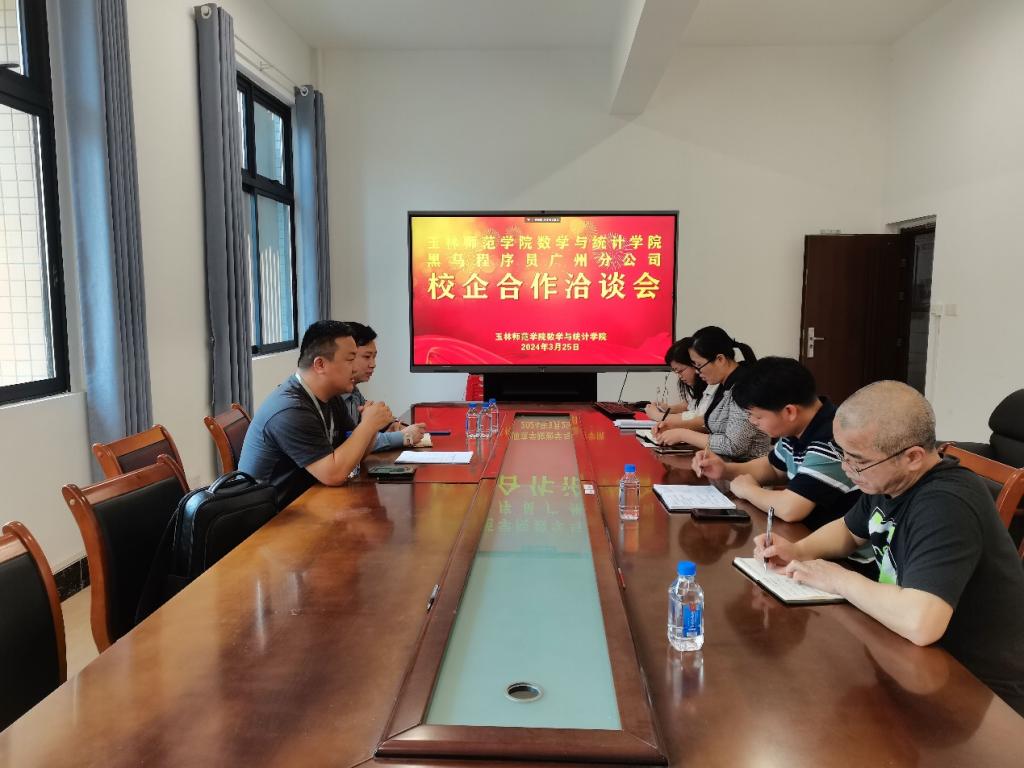 为落实党中央、国务院“稳就业”“保就业”决策部署,抢抓春季就业工作关键期,加强校企与毕业生对接合作,3月25日,数学与统计公司党委副书记李秀英、副经理杨京开及各教研室主任与江苏传智播客教育科技股份有限公司黑马程序员广州分公司华南大区总监安宁一行开展校企合作洽谈会。