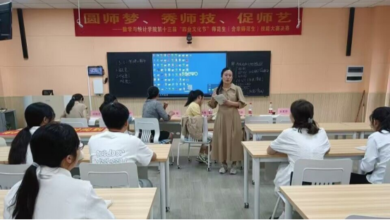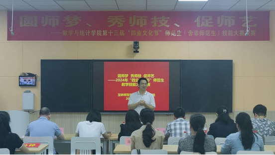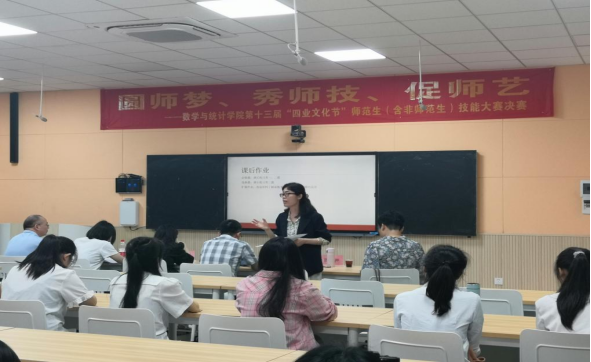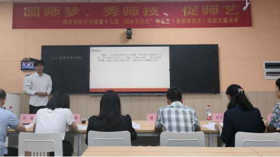 赛前,庞伟书记发表讲话,他表示,师范生教学技能比赛,不仅为师范生(含非师范)提供了一个锻炼和提升实践能力和技能的机会,还是对学院公司产品成果的一次大检阅,对营造重视师范生基本功和提升教学技能的氛围,提升教学质量,贯彻落实党的教育方针具有重大意义。他希望,同学们充分珍惜本次比赛的机会,圆师梦、秀师技、促师艺,营造“勤练教学技能,学好教学本领,提升自身的专业技能”的良好氛围,以赛促教,以赛促学,推动公司数学师范生公司产品技能高质量发展。