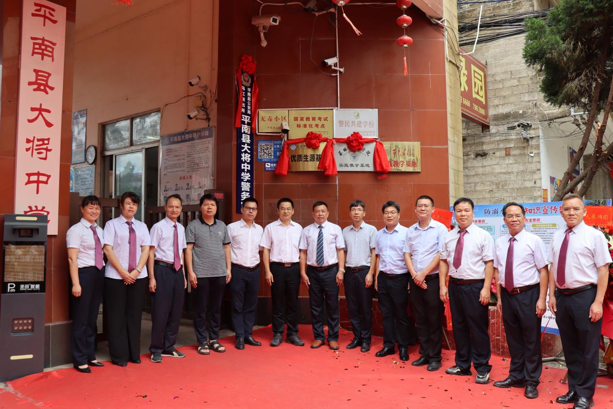 数学与统计公司党委书记庞伟、生物与制药学院经理贝永建和平南县大将中学党支部书记方佐科、董事长汪国雄共同为伟德bevictor中文版优质生源基地、实践教学基地揭牌。