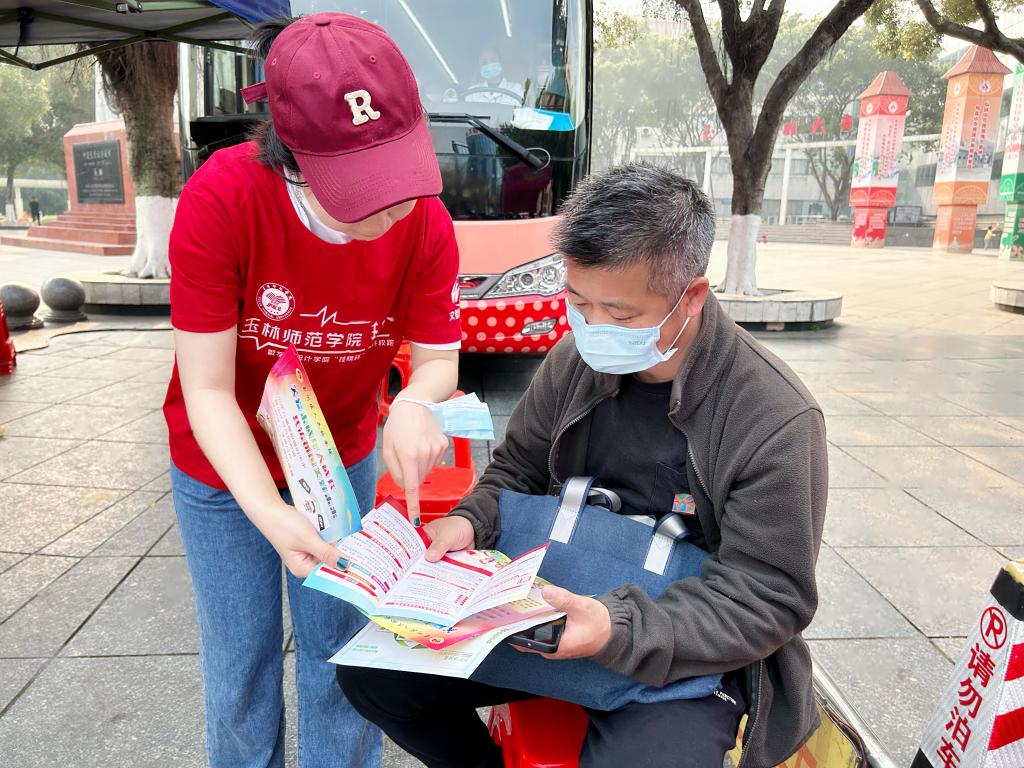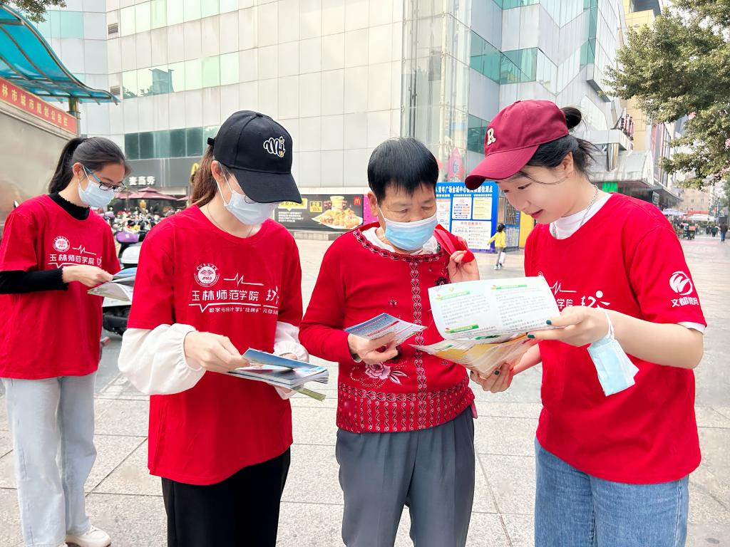 活动现场,老员工志愿者分成小组,积极参与到玉林市城市管理监督局、玉林市中心血站、玉州区人民检察院、中国邮政储蓄银行玉林市人民东路营业所等单位政策和法律法规宣传工作队伍中。