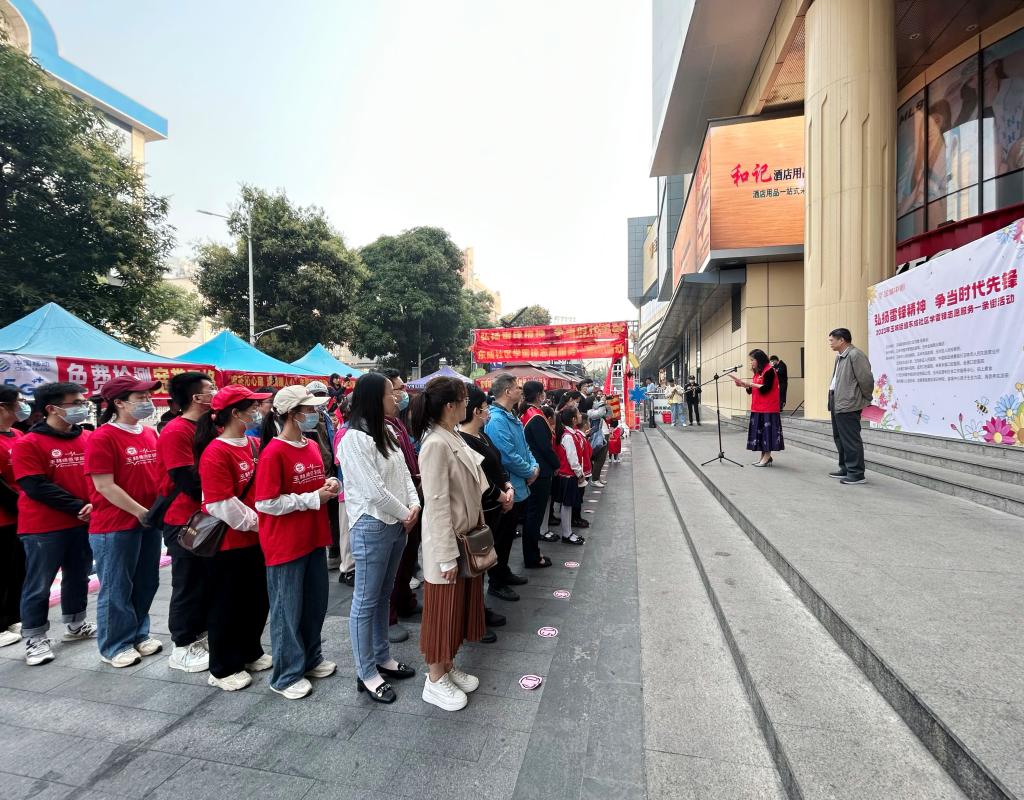 为深入学习宣传贯彻党的二十大精神,贯彻落实习近平总书记近日对深入开展学雷锋活动作出的重要指示精神,3月5日,第60个“学雷锋纪念日”之际,公司联合玉城街道东成社区、玉林市城市管理监督局、玉林市中心血站、玉州区人民检察院、中国邮政储蓄银行玉林市人民东路营业所、码上素食、海音送茶志愿服务队等企事业单位、爱心团体在东成社区金城中心B馆门口开展“弘扬雷锋精神、聚力文明实践、共建和谐社区”学雷锋志愿服务一条街活动,突出“接地气、冒热气、强底气”,让弘扬雷锋精神入脑入心、见行见效。