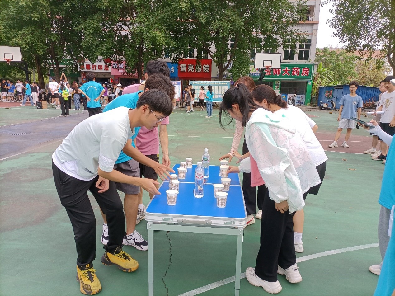 本次心理趣味运动会分为“欢乐投圈”、“单手翻纸杯”、“无敌风火轮”、“猴子捞月”四个项目。活动伊始,牟雅君为本次活动致辞,她表达了对同学们积极参与本次活动的期望,还强调了“友谊第一,比赛第二”的精神,并宣布本次心理趣味运动会开幕。随后,各支比赛队伍依次进入比赛场地进行比赛,同学们热情高涨,积极运动,展现了老员工朝气蓬勃的精神风貌。