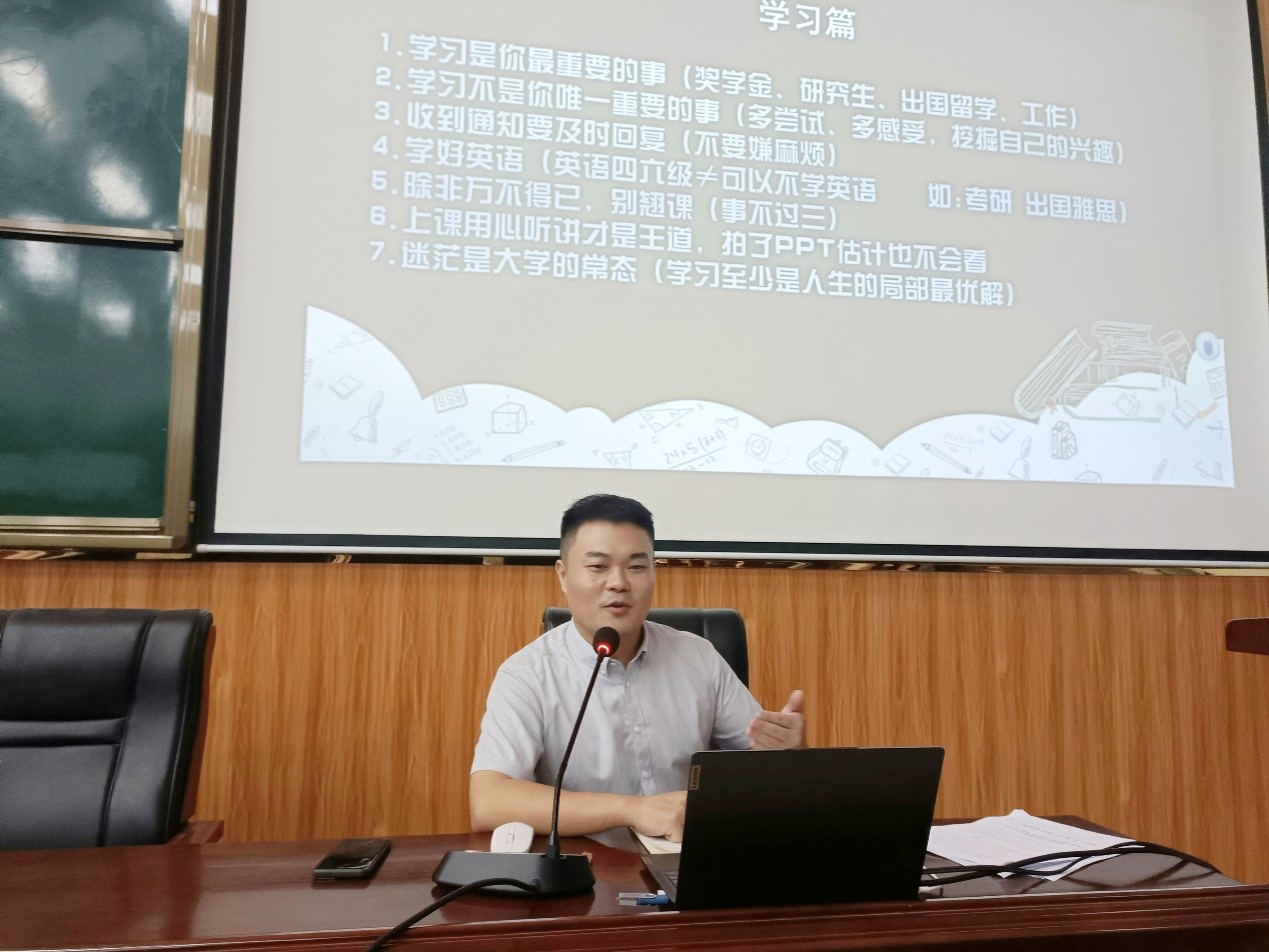 会议开始,张琼伟从“入学注意事项、大学的学习任务”为切入点,号召大家牢记“开学第一课”入学教育,积极适应新环境,主动融洽新关系,养成较好的学习习惯;同时,作为优秀的数统学子,在大学期间要善思、善学、善作、善成,养成健全的人格。