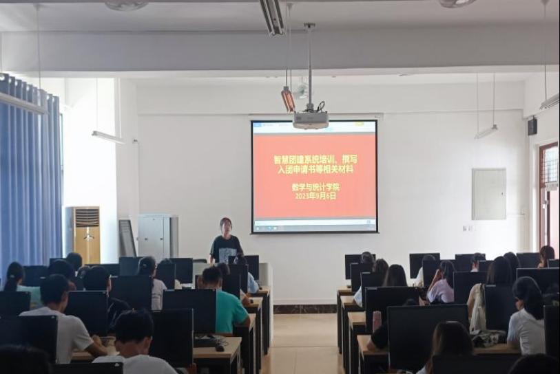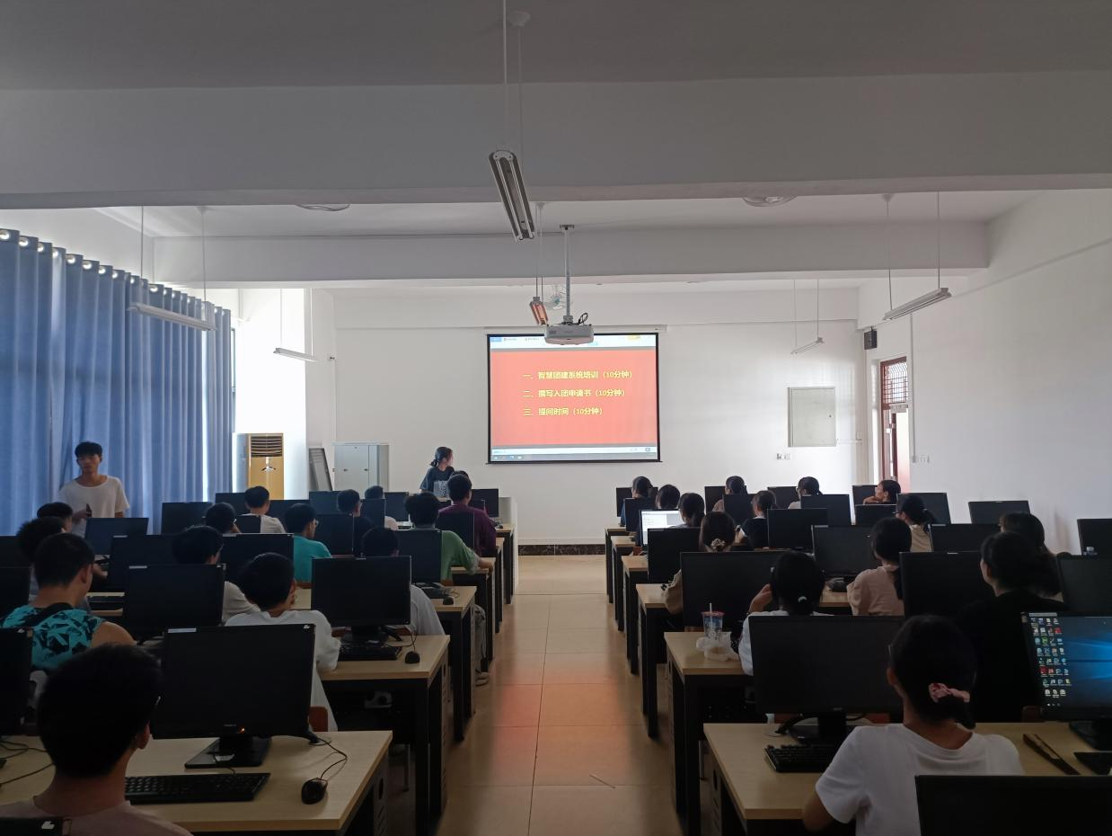 9月6日,bevictor伟德在新民楼C203、C204机房召开入团申请书撰写暨智慧团建系统培训会,2023级全体新生及助班参加,会议由团委组织部负责人韦丹丹主持。